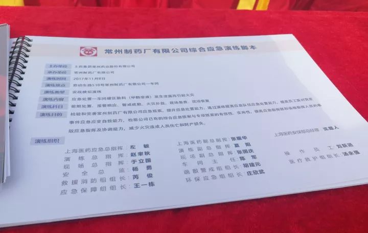 為提升突發事件應急處置水平,科學有效應對安全事故,11月8日下午,在全國開展“119”消防宣傳日活動之際,由上海醫藥集團、上藥常藥主辦,常州制藥廠有限公司承辦的2017年綜合應急演練活動在常州制藥廠舉行。