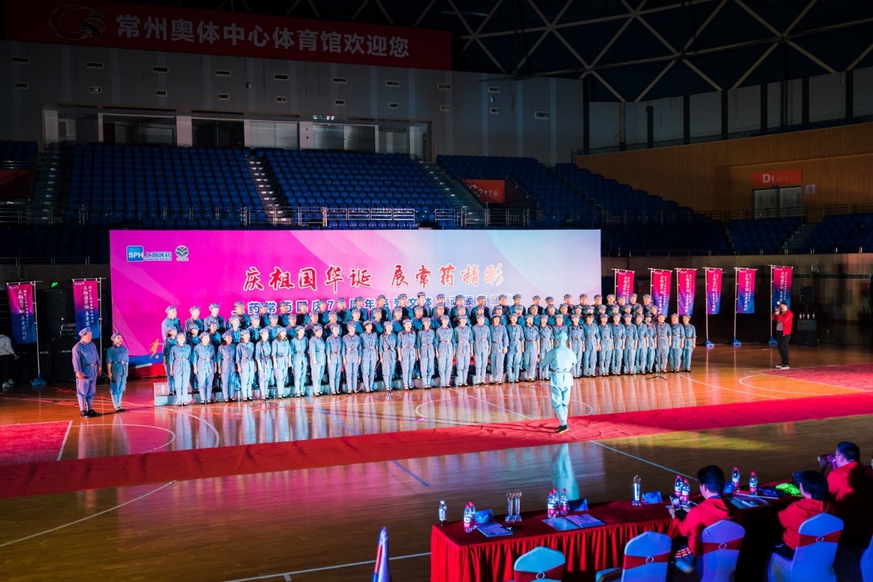 常藥廠合唱隊帶來歌曲《過雪山草地》、《四渡赤水出奇兵》,上藥常藥合唱隊帶來歌曲《我們走在大路上》、《我和我的祖國》。現場氣氛在氣勢磅礴的《歌唱祖國》大合唱中達到高潮。全場員工一起站立,揮舞國旗,齊聲高歌,頒獎典禮活動圓滿落幕。